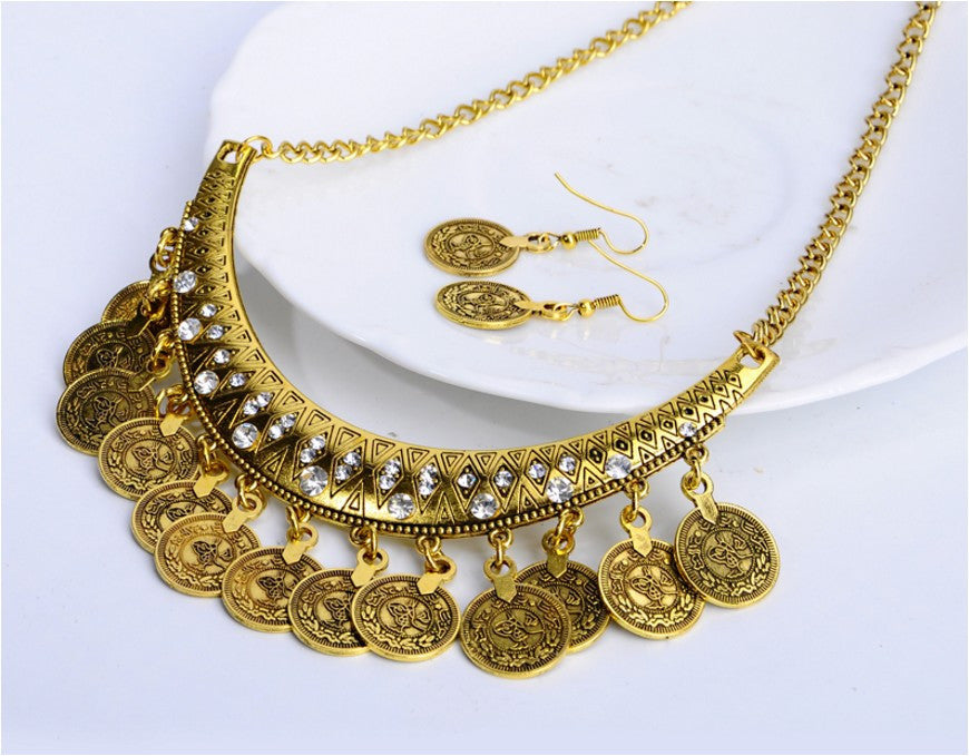 • Ethnic Necklace :Women Coin Tassel Collier Necklaces
