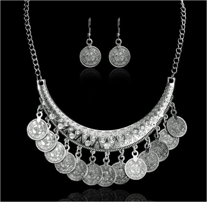 Jewelry Vintage Ethnic Carved Coins Pendant